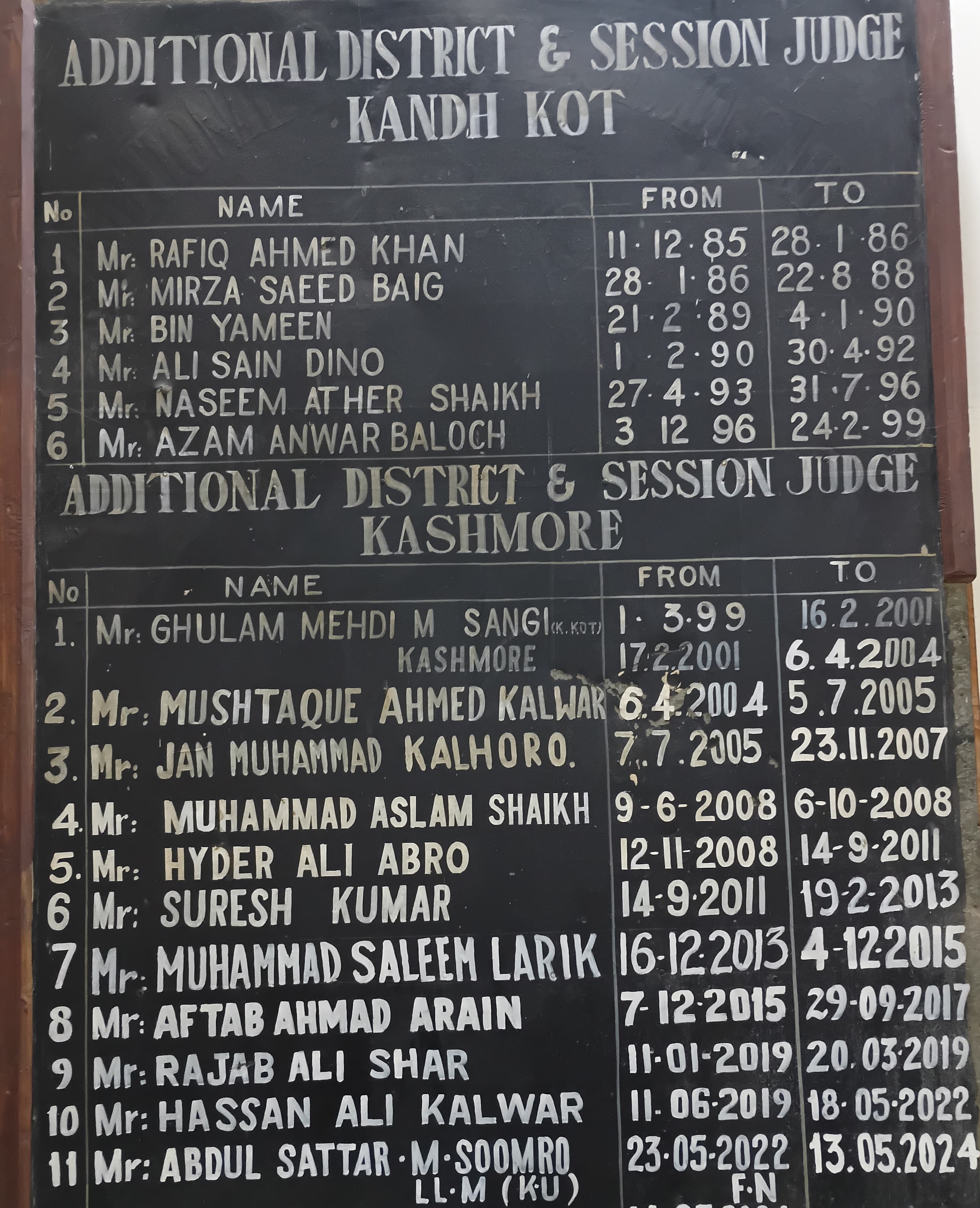 Honourable Additional District & Sessions Judges, Posted at Additional District & Sessions Court, Kashmore from 1986.